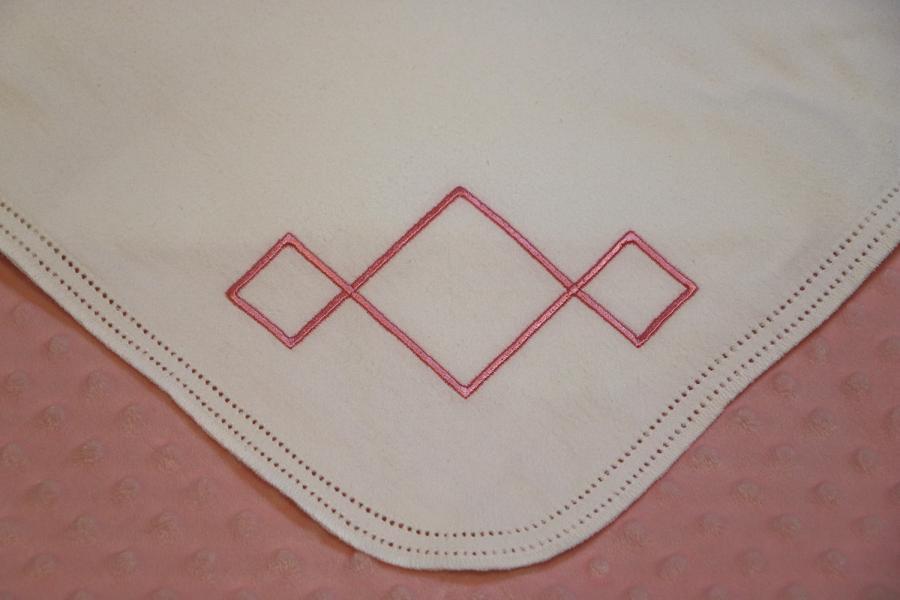 Hemstitched Embroidered Blesssing Blanket Pink (Double Layer) W/Burp Cloth Kit