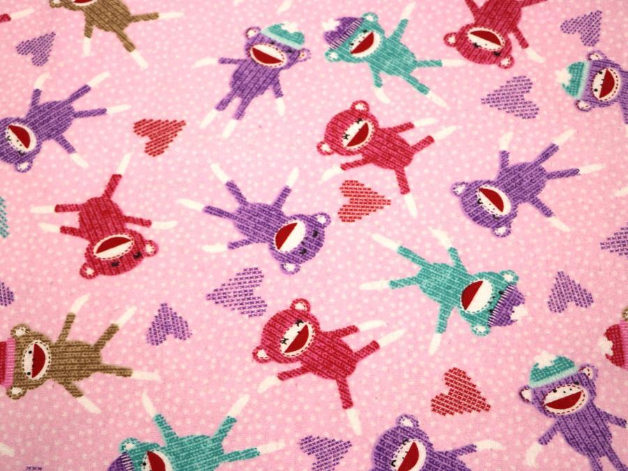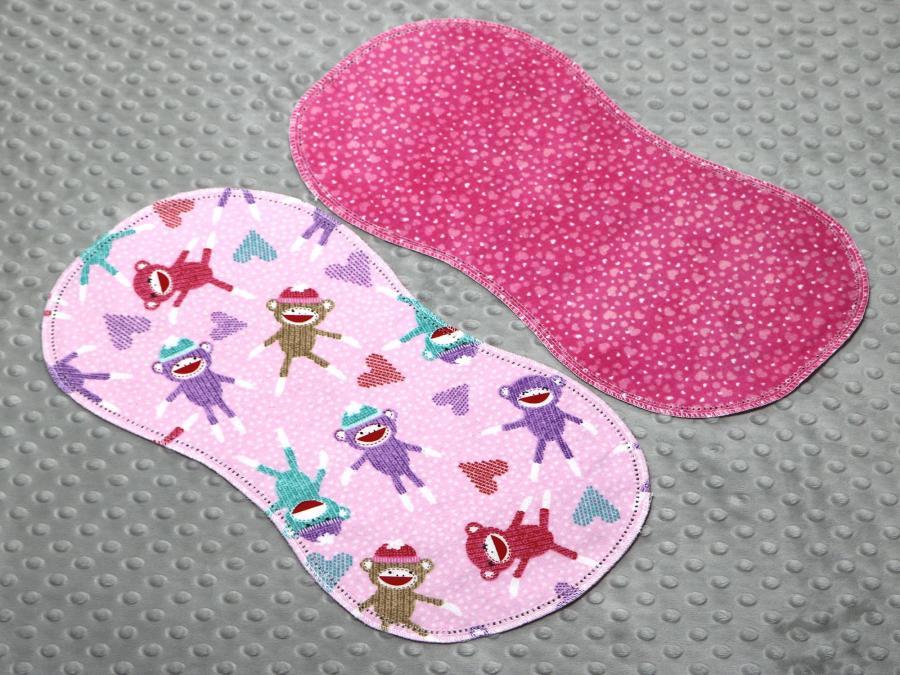 I Love Sock Monkeys Pink Hemstitched Flannel Blanket w/(2) Burp Cloths Kit