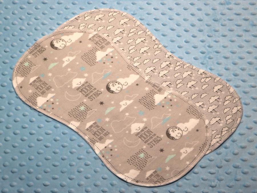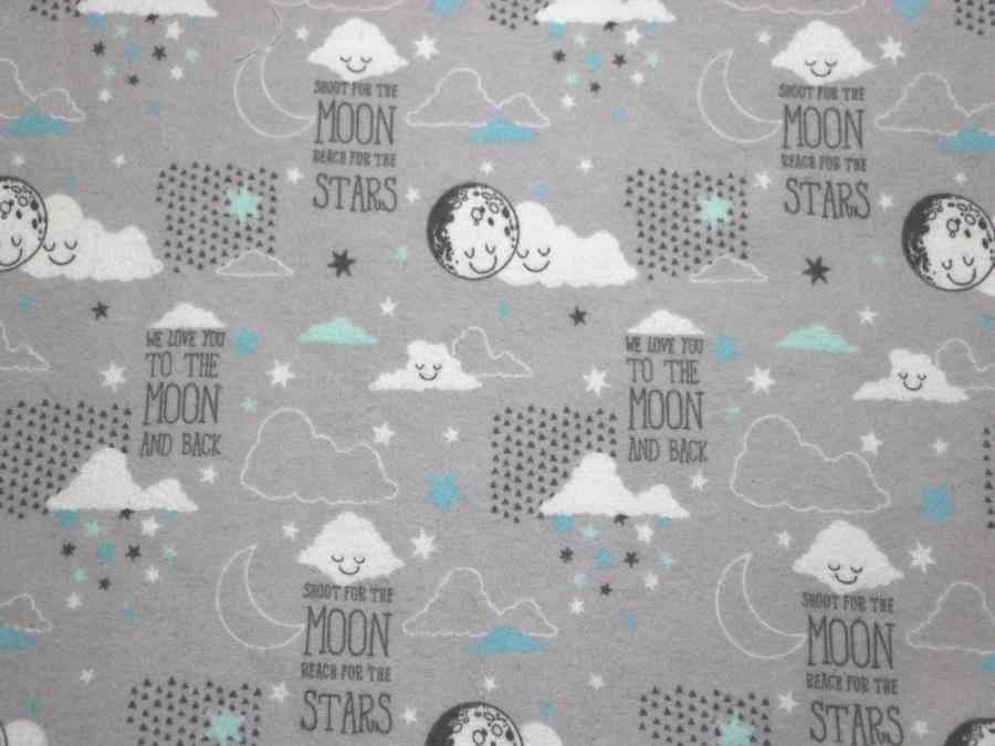 Shoot For The Moon Hemstitched Flannel Blanket w/(2) Burp Cloths Kit