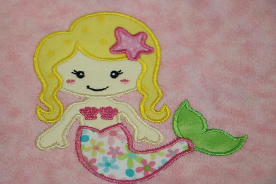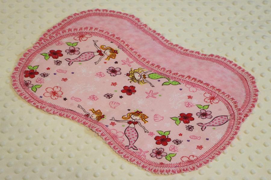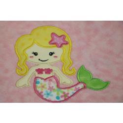 Applique Mermaid And Sea Friends Flannel Blanket w/(2) Burp Cloths Gift Set