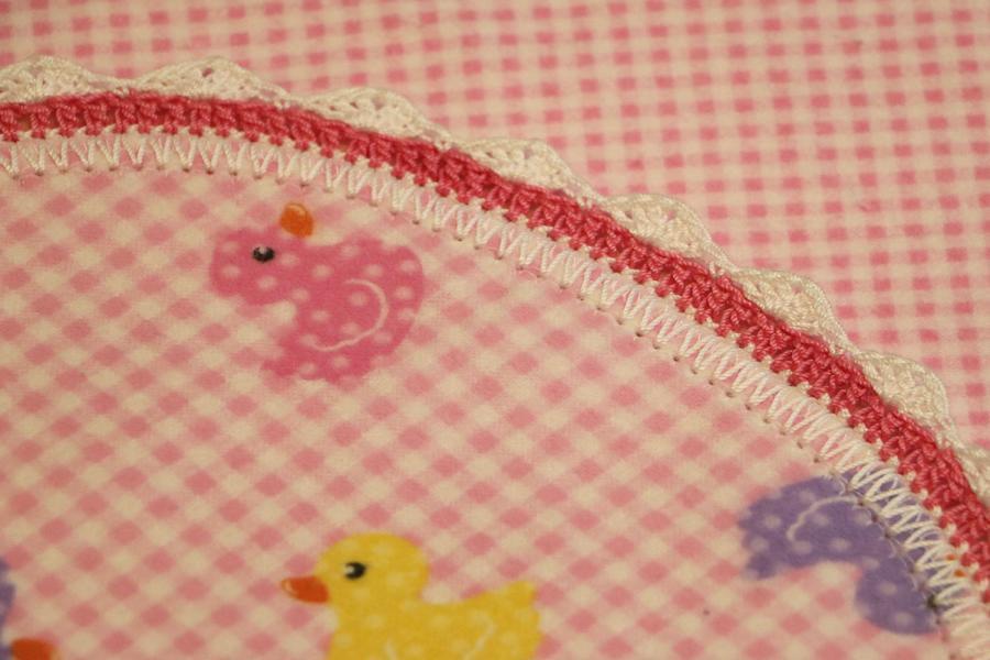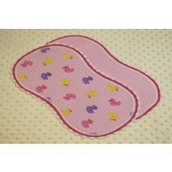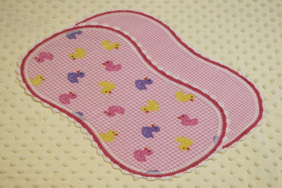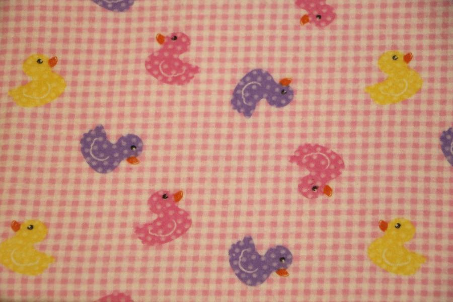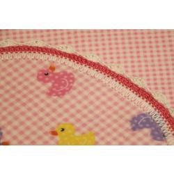 Ducks On Gingham Pink Finished Crochet Edge Flannel Blanket w/(2) Burp Cloths Gift Set