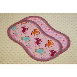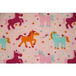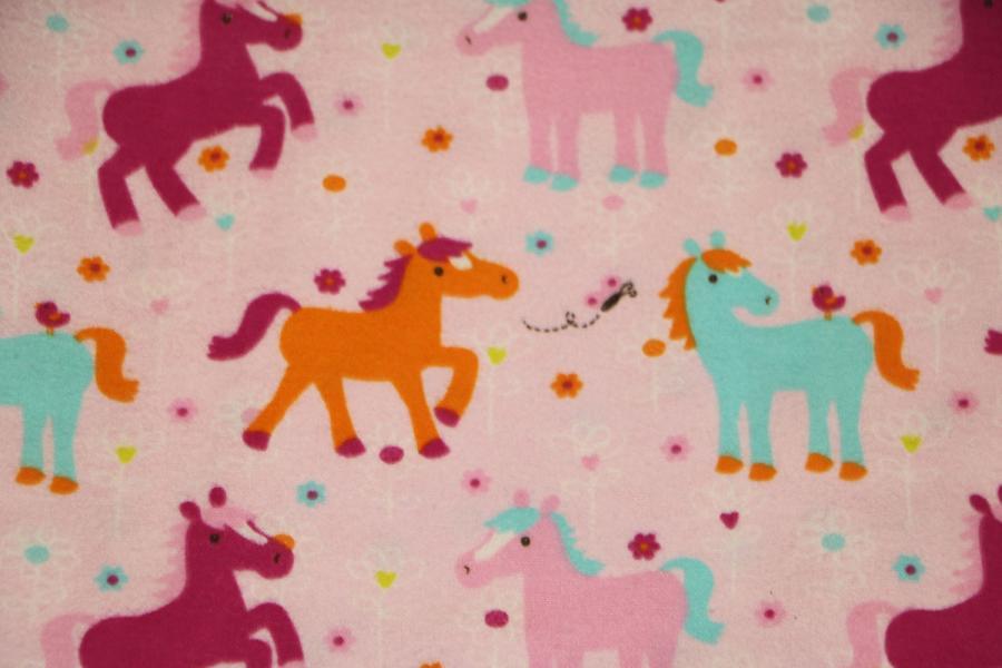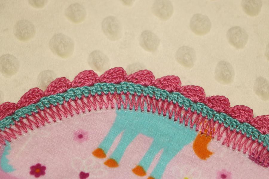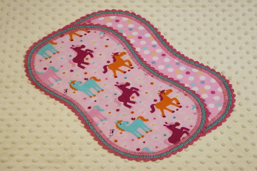 Pink Ponies Finished Crochet Edge Flannel Blanket w/(2) Burp Cloths Gift Set