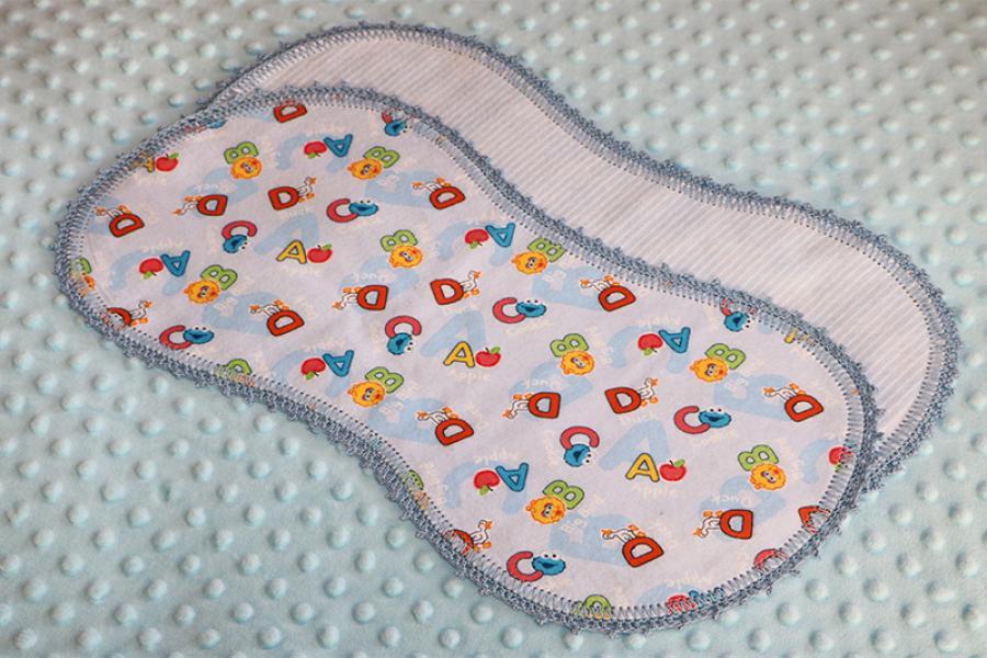 Embroidered Flannel Blessing Blanket and Burp Cloth Blue w/Crochet...