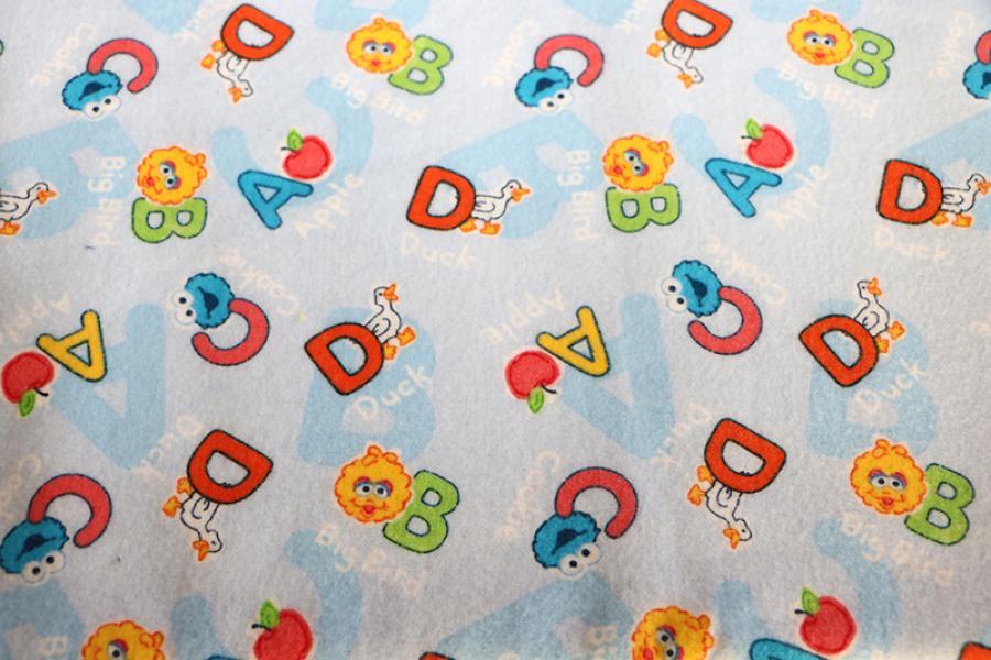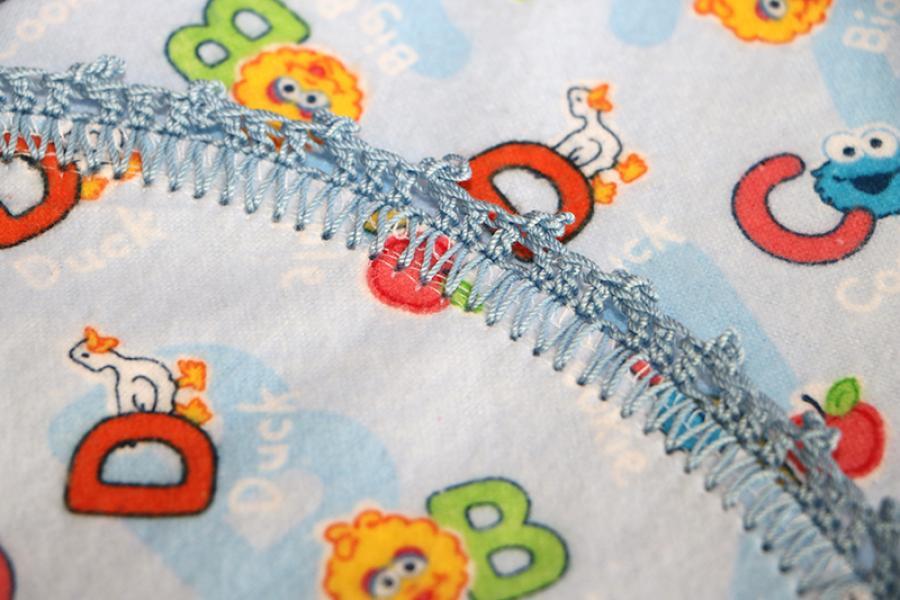 Sesame Street Blue Finished Crochet Edge Flannel Blanket w/(2) Burp Cloths Gift Set